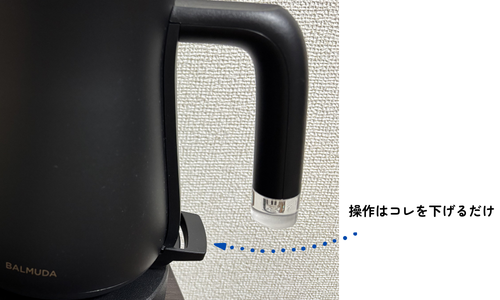 水を入れてスイッチを下げるとお湯を沸かせるというシンプルな操作のみです。